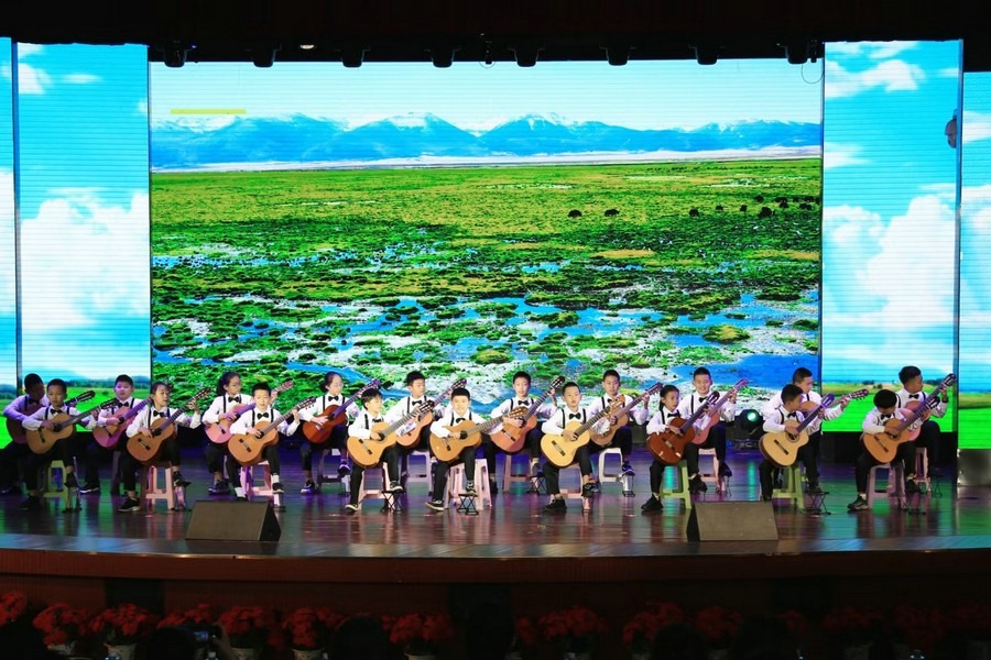 合唱《強(qiáng)國一代有我在》《祖國有我》、古典吉他合奏《天邊》、京劇《梨園薈萃》、朗誦《致敬祖國》、中國舞《碇步橋》、合唱《黨的孩子》《四季的問候》、《民族團(tuán)結(jié)英雄贊歌》、古箏齊奏《上春山》、拉丁現(xiàn)代舞《紅旗飄飄》、朗誦《你好,未來的我們》、師生舞蹈《外婆橋》、合唱《石榴籽一家親》等13個展演節(jié)目輪番上演。