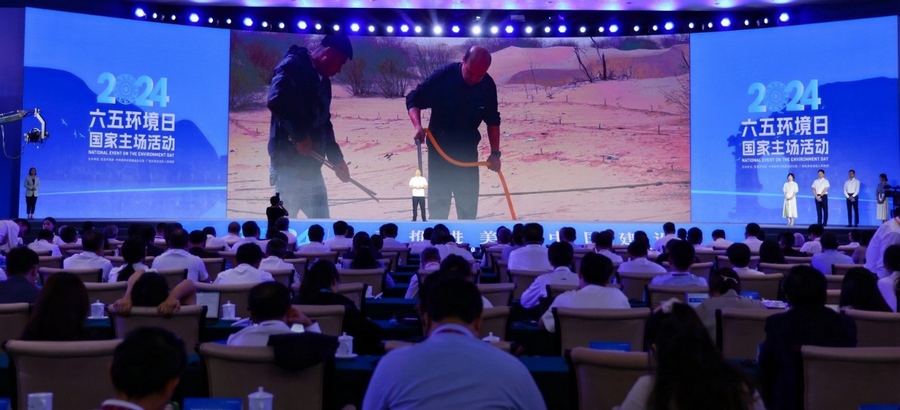 當(dāng)天在廣西南寧,生態(tài)環(huán)境部、中央文明辦、廣西壯族自治區(qū)人民政府聯(lián)合舉辦了2024年六五環(huán)境日國(guó)家主場(chǎng)活動(dòng)。建設(shè)美麗中國(guó),是實(shí)現(xiàn)中華民族偉大復(fù)興中國(guó)夢(mèng)的重要內(nèi)容。在習(xí)近平生態(tài)文明思想指引下,一個(gè)人與自然和諧共生的美麗中國(guó)正從藍(lán)圖變?yōu)楝F(xiàn)實(shí)?;顒?dòng)特別設(shè)立了“從這里看見(jiàn)美麗中國(guó)”主題展示環(huán)節(jié),從全國(guó)各地的案例中遴選了6個(gè)“美麗中國(guó)建設(shè)創(chuàng)新示范案例”,內(nèi)蒙古杭錦旗庫(kù)布其沙漠億利生態(tài)示范區(qū)“綠水青山就是金山銀山”實(shí)踐創(chuàng)新基地作為唯一的“兩山”基地案例在活動(dòng)現(xiàn)場(chǎng)進(jìn)行了展示。來(lái)自億利資源集團(tuán)的庫(kù)布其治沙工程師田旺應(yīng)邀參加活動(dòng),他結(jié)合親身經(jīng)歷,向全球嘉賓介紹了政府、企業(yè)、農(nóng)牧民合力治理庫(kù)布其沙漠三十多年,在生態(tài)文明思想引領(lǐng)下將“死亡之?!苯ㄔO(shè)成為生命綠洲的生動(dòng)故事。