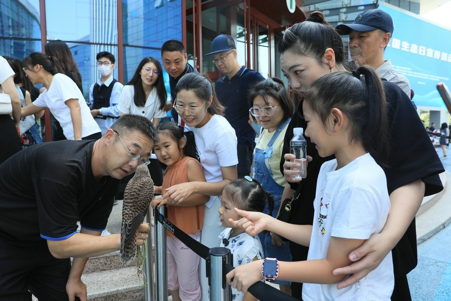 8月2日,呼和浩特。全國(guó)生態(tài)日宣傳活動(dòng)現(xiàn)場(chǎng),野生動(dòng)物零距離互動(dòng),吸引了眾多參觀者圍觀。