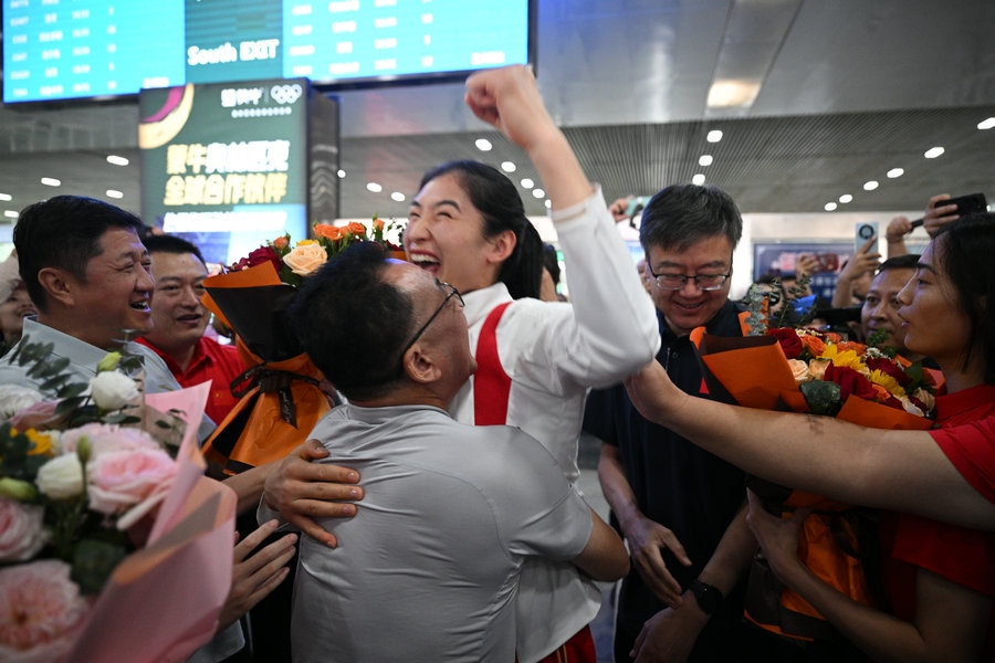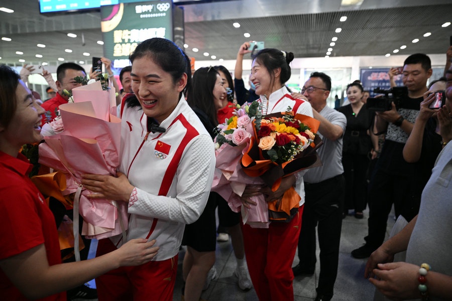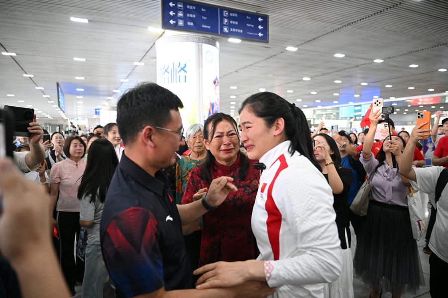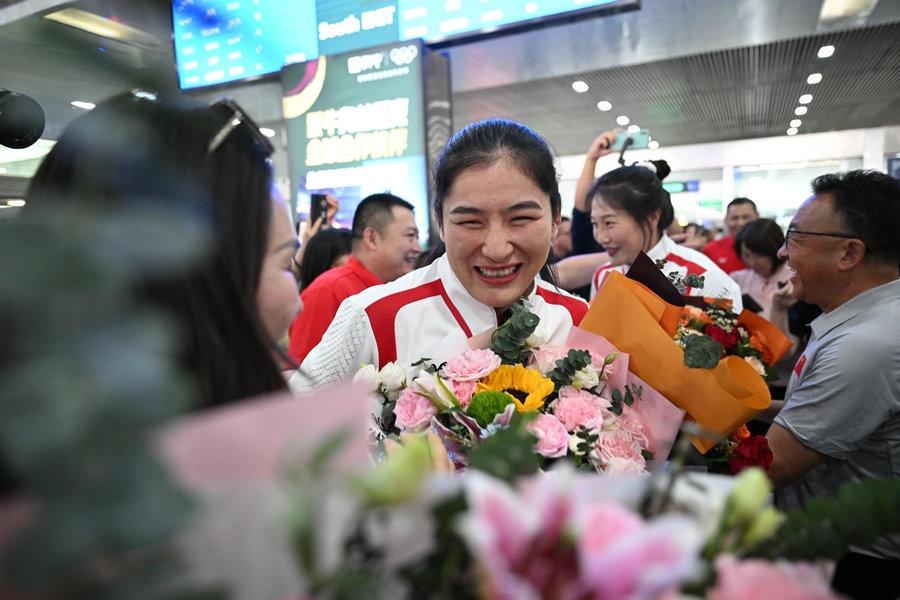 8月15日,征戰(zhàn)巴黎奧運(yùn)會(huì)的內(nèi)蒙古健兒李倩、楊柳乘坐高鐵,從北京回到呼和浩特。李倩在巴黎奧運(yùn)會(huì)斬獲女子75公斤級(jí)金牌,楊柳摘得女子66公斤級(jí)銀牌。奧運(yùn)健兒載譽(yù)歸來(lái),身在家鄉(xiāng)的親朋好友、隊(duì)友教練為她們準(zhǔn)備了盛大的歡迎儀式。(記者 李艷紅 李文華 林則志 石茹意)