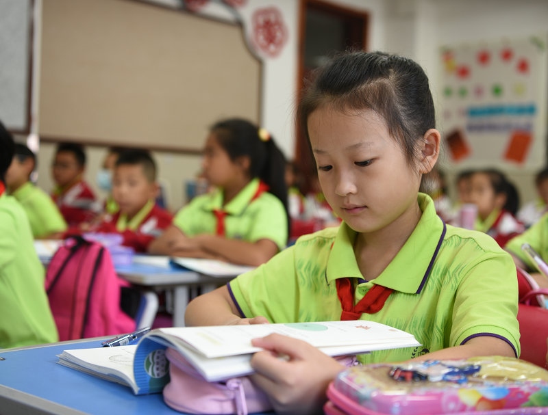 “《滿江紅》的作者是誰?”老師提問?!啊稘M江紅》的作者是抗金英雄岳飛,‘莫等閑,白了少年頭,空悲切!’”同學(xué)周浠浩回答。