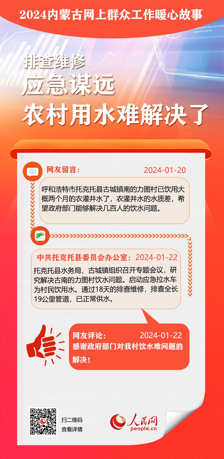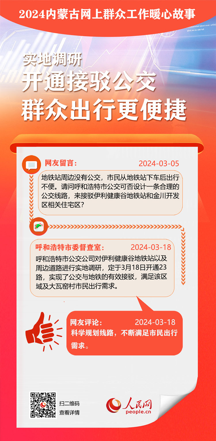 走好走實(shí)網(wǎng)上群眾路線 用心用情為民服務(wù)辦實(shí)事。依托人民網(wǎng)“領(lǐng)導(dǎo)留言板”,內(nèi)蒙古自治區(qū)各級(jí)黨委、政府著力解決網(wǎng)民反映的熱點(diǎn)難點(diǎn)。2024年,一批群眾關(guān)切的急難愁盼問(wèn)題得到及時(shí)解決。人民網(wǎng)內(nèi)蒙古頻道推出特別策劃,盤(pán)點(diǎn)過(guò)去一年內(nèi)蒙古網(wǎng)上群眾工作那些暖心事?!?/p>