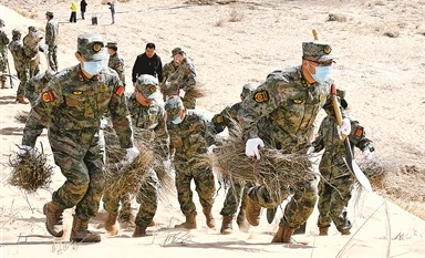 2025年5月6日《中國(guó)國(guó)防報(bào)》第1版刊發(fā)了《內(nèi)蒙古巴彥淖爾軍分區(qū)發(fā)動(dòng)民兵參與烏蘭布和沙漠治沙攻堅(jiān)戰(zhàn) 植樹造林戰(zhàn)“黃龍”》的文章,報(bào)道了連日來,內(nèi)蒙古巴彥淖爾市民兵到烏蘭布和沙漠植樹造林。為植樹造林鎖住“黃龍”,當(dāng)?shù)剀娒衤?lián)手筑起了一道48公里長(zhǎng)的綠色屏障。據(jù)氣象部門數(shù)據(jù)顯示,近年來,當(dāng)?shù)厣硥m暴、干熱風(fēng)、浮塵天氣年平均日數(shù)顯著下降。