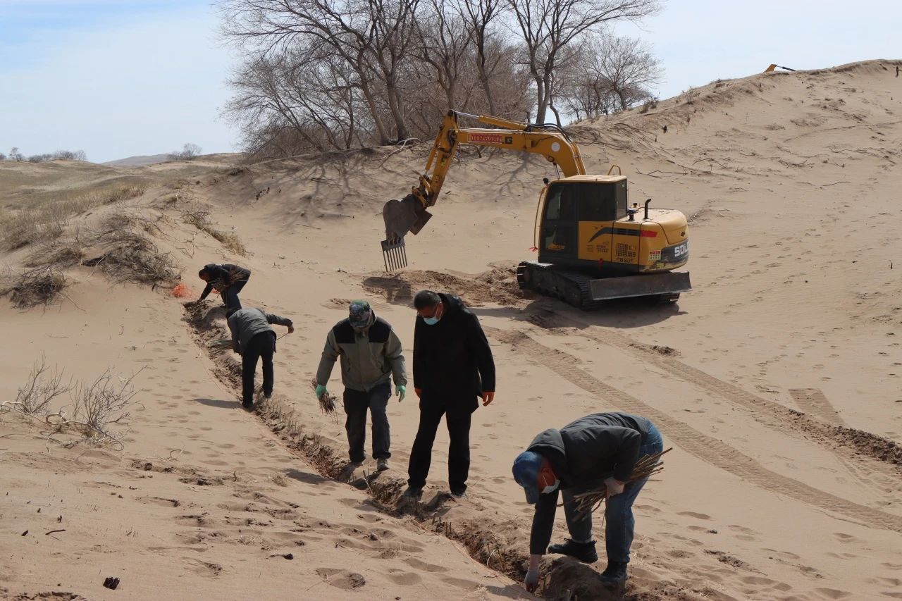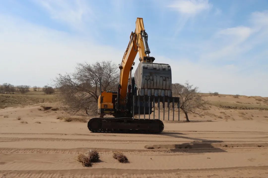 改裝后的挖掘機(jī)在治沙工作中展現(xiàn)出了強(qiáng)大的優(yōu)勢(shì)。據(jù)了解,以往人工種植時(shí),兩個(gè)人一天才能完成一畝地的工作量,五個(gè)人最多也只能處理兩畝半到三畝地。而如今,改裝后的挖掘機(jī)一天的工作量相當(dāng)于五個(gè)人種植十畝地,不僅大大提升了工作效率,還節(jié)約了大量的人力和物力。原本只能用于挖掘作業(yè)的鉤機(jī),經(jīng)過(guò)簡(jiǎn)單改裝后,搖身一變成為防塵固沙的“利器”,為沙漠治理工作注入了新的活力。目前,合作社已投入兩臺(tái)改裝挖掘機(jī)進(jìn)行作業(yè),并計(jì)劃在未來(lái)將其數(shù)量增加至五臺(tái),以確保按時(shí)完成2025年規(guī)劃中8.4萬(wàn)畝的治理任務(wù)。