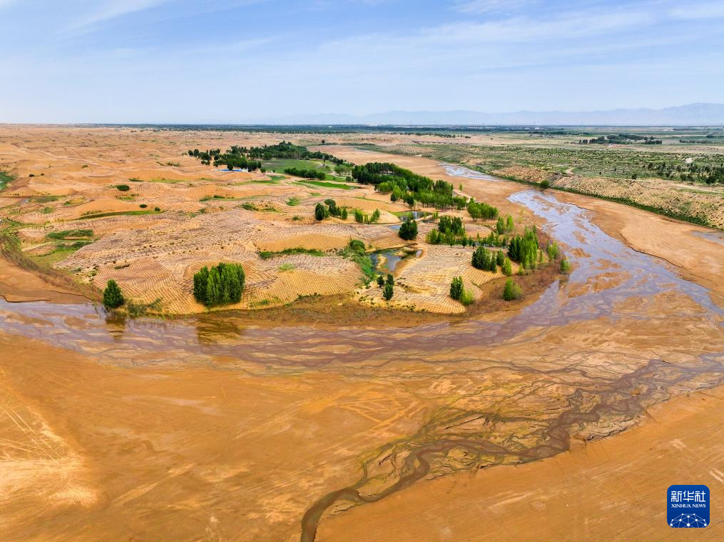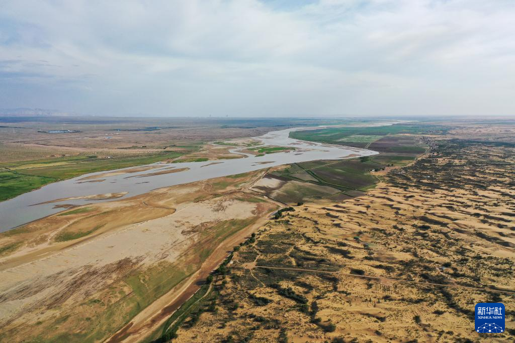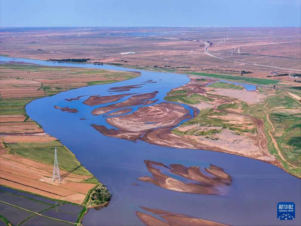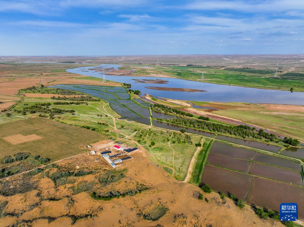 在巴彥淖爾市磴口縣劉拐沙頭,黃河蜿蜒而過(6月5日攝,無人機(jī)照片)新華社記者 連振 攝