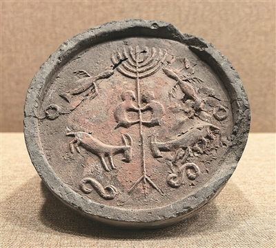 遺址展示館內(nèi),戰(zhàn)國(guó)時(shí)期樹(shù)木鳥(niǎo)獸紋瓦當(dāng)、漢代“富樂(lè)未央,子孫宜昌”銘文磚、北魏角抵瓦當(dāng)?shù)冉ㄖ?gòu)件,訴說(shuō)著古城的千年繁華。樹(shù)木鳥(niǎo)獸紋瓦當(dāng)正中有一株挺拔的樹(shù),弧形樹(shù)冠向上舒展,枝葉兩側(cè)對(duì)稱(chēng)雕刻振翅飛鳥(niǎo),樹(shù)干上的兩只猴子呈攀緣姿態(tài)相對(duì)而立,樹(shù)根部對(duì)飾兩只山羊,造型質(zhì)樸。內(nèi)蒙古師范大學(xué)北疆文化研究中心主任陳永志介紹:“樹(shù)冠飛鳥(niǎo)、猴子攀樹(shù)題材源自中原地區(qū)靈魂升天、王侯將相等文化元素,而對(duì)羊紋又具有草原游牧民族風(fēng)格。這件瓦當(dāng)生動(dòng)體現(xiàn)了中原文化與北方草原文化的交融?!?/p>