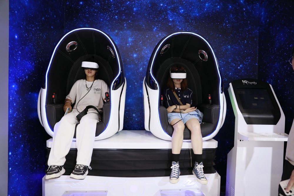阿拉善展區(qū)游客正在體驗(yàn)“太空之旅”