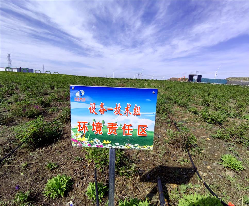 35米高的排土場(chǎng)綠波蕩漾。
