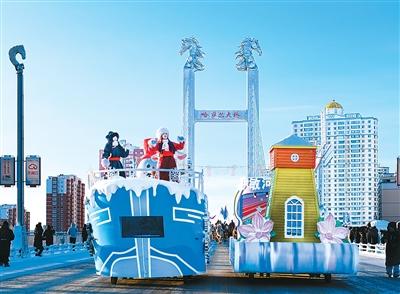 蒙古包群的另一邊,以馬為主題的彩色冰雕喜迎農(nóng)歷馬年;13米長的未來機車巨型冰雕融合聲光電技術(shù),營造科幻氛圍;以曲棍球冠軍群像為主題的雪雕群成為游客拍照留念的打卡點。