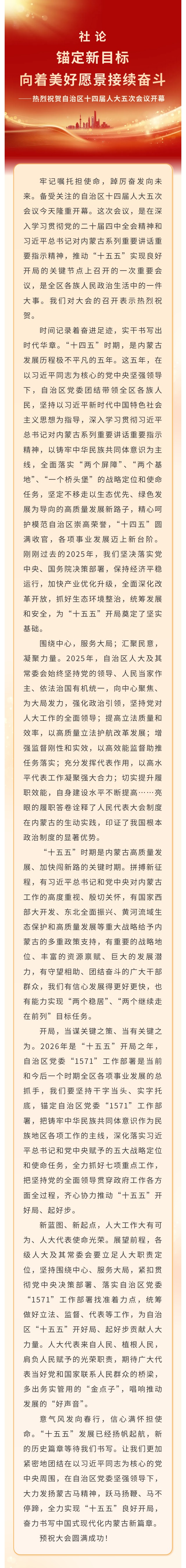社論|錨定新目標(biāo),向著美好愿景接續(xù)奮斗——熱烈祝賀自治區(qū)十四屆人大五次會(huì)議開幕