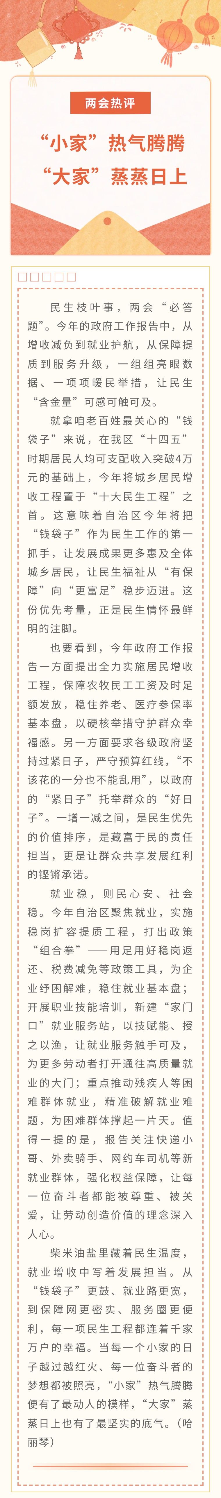 兩會(huì)熱評(píng)|“小家”熱氣騰騰 “大家”蒸蒸日上