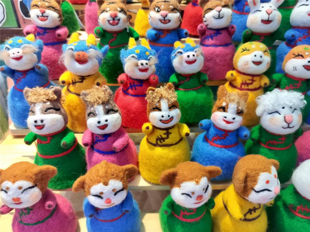 在呼和浩特市回民區(qū)寬巷子的一家非遺手作店內(nèi),來自青島的游客王藝女士,被展臺(tái)上憨態(tài)可掬的十二生肖蒙古族氈繡擺件深深吸引。“這些小動(dòng)物太可愛了,每一個(gè)都自帶草原的靈氣!”她告訴記者,一定要把這份來自草原的心意,當(dāng)作新年禮物帶回青島送給家人。