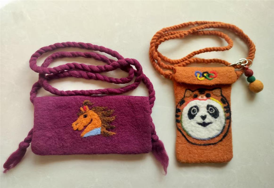 這套擺件采用的蒙古族氈繡技藝是國家級(jí)非物質(zhì)文化遺產(chǎn),多以駝絨、羊毛、馬鬃為原料,以縫制、壓邊等手法繡于毛氈之上,成品兼具實(shí)用性與藝術(shù)性。近年來,該技藝衍生出冰箱貼、擺件、杯墊、背包等精致便攜的文創(chuàng)產(chǎn)品,讓古老技藝在新時(shí)代煥發(fā)勃勃生機(jī)。