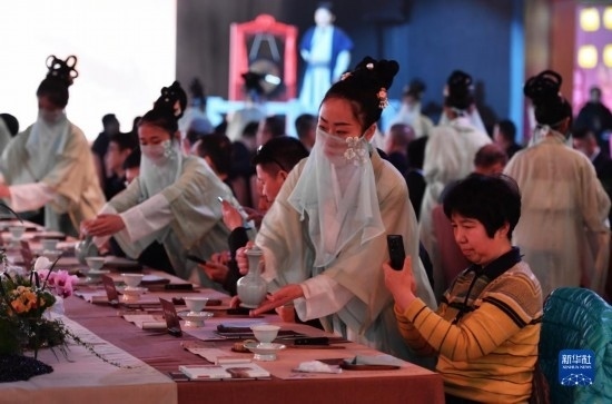 2月22日拍攝的“宋元海絲宴”推介儀式現(xiàn)場(chǎng)的行茶禮。
