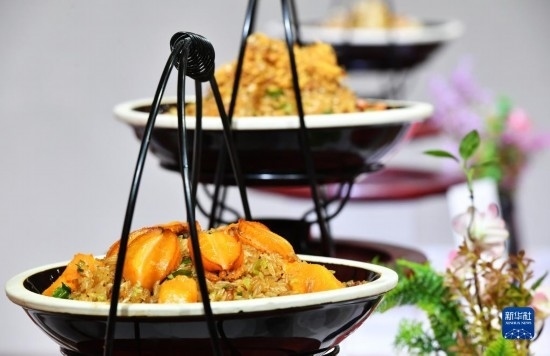 2月22日拍攝的“宋元海絲宴”中的南瓜鮑魚(yú)飯。