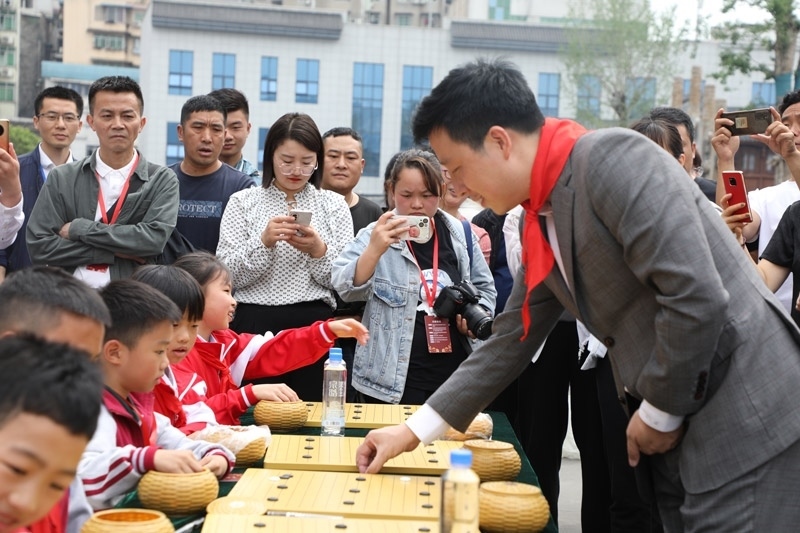 人民網(wǎng)銅仁5月15日電 (記者李乃妍)5月14日,第十屆中國女子圍棋甲級聯(lián)賽希望教室捐贈儀式和指導棋活動在銅仁市梵凈書院進行,中國圍棋協(xié)會主席林建超等出席活動并發(fā)言。世界冠軍古力、孔杰、馬曉春等與當?shù)匦∑逋轮笇濉?/p>