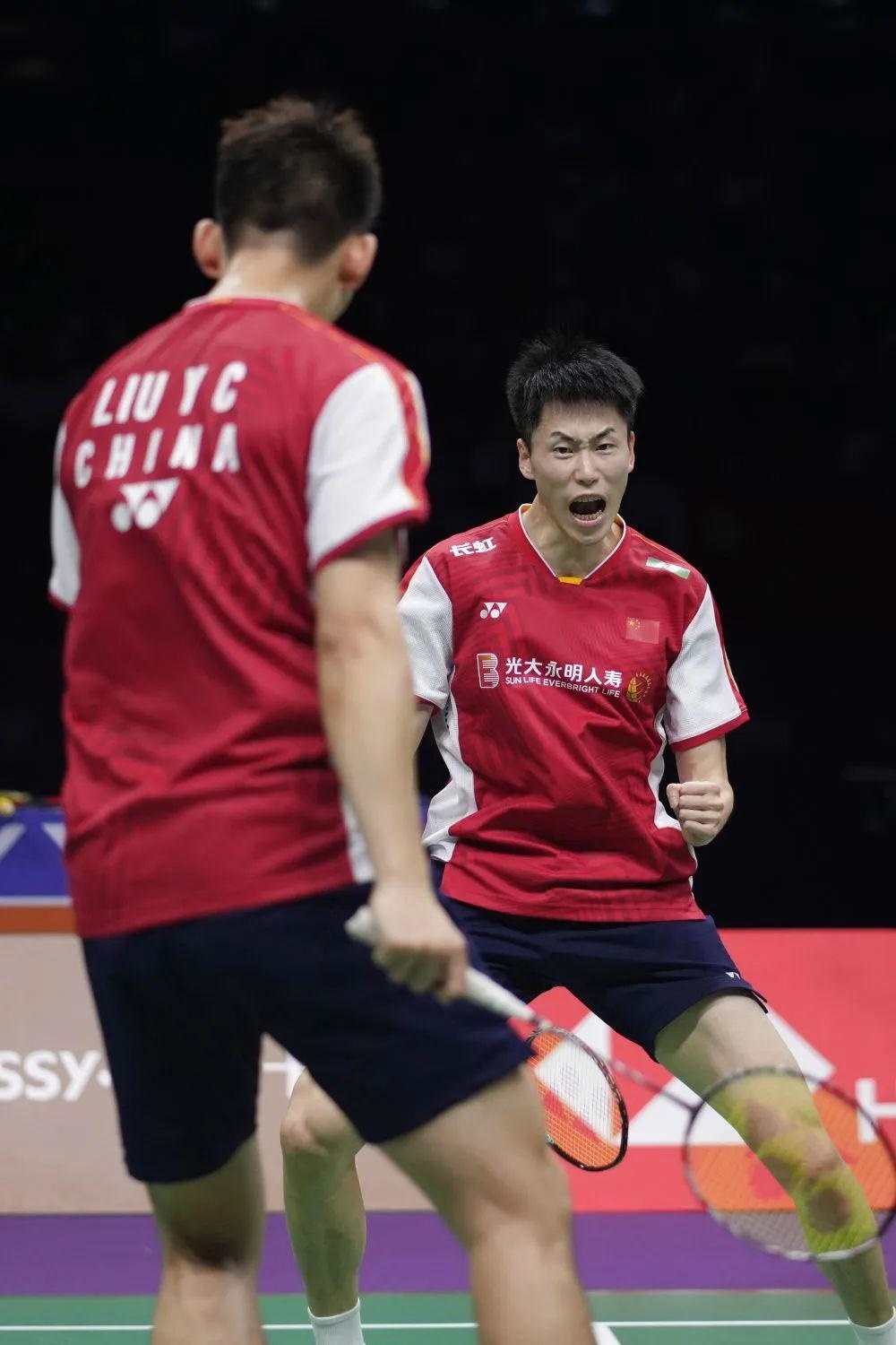 以保木卓朗/小林優(yōu)吾遺憾、懊惱的表情為背景,劉雨辰越過邊界擋板在場內狂奔,與場邊的教練擊掌相慶?!澳孟卤荣?,完成了我們的任務,沒給男雙丟臉,在主場也沒給球迷們丟臉!”劉雨辰賽后說。