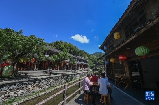 5月30日,游客在布袋坑村里游覽。