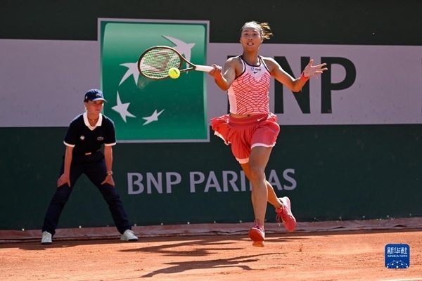 5月28日,鄭欽文在比賽中回球。當(dāng)日,在2023法國網(wǎng)球公開賽女子單打首輪比賽中,中國選手鄭欽文以2比0戰(zhàn)勝斯洛文尼亞選手齊丹塞克,晉級第二輪。新華社發(fā)(朱利安·馬蒂亞攝)