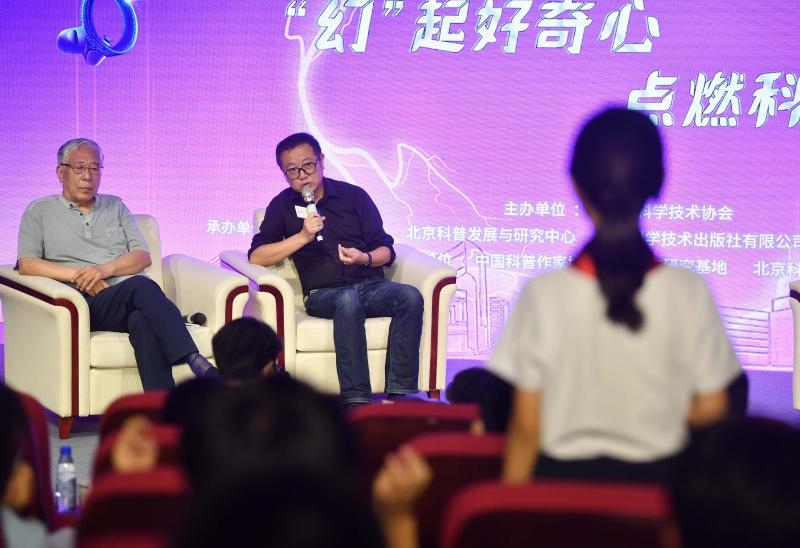 科幻有預(yù)言功能嗎?《流浪地球》中“冬眠”那樣的科幻技術(shù)會(huì)影響人類的發(fā)展方向嗎??jī)?yōu)秀科幻作品如何帶給讀者強(qiáng)烈的代入感?昨天,一場(chǎng)科幻大師與中學(xué)生之間的對(duì)話在中國科幻大會(huì)上演。作為中國科幻大會(huì)的重要組成部分,“首都青少年科幻嘉年華”在首鋼園和北京科學(xué)中心舉辦,其中的“大師對(duì)話”環(huán)節(jié)邀請(qǐng)著名科幻作家劉慈欣、王晉康,與第42屆北京青少年科技創(chuàng)新大賽科幻畫獲獎(jiǎng)?wù)呒鞍儆嗝袑W(xué)生進(jìn)行了科幻對(duì)話。