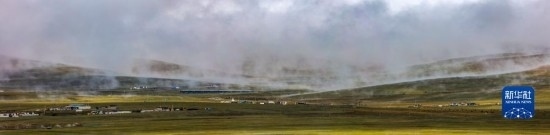6月16日在國(guó)道317線那曲段拍攝的草原晨霧風(fēng)光(拼接照片)。