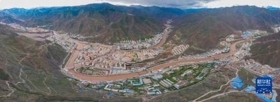6月22日在國(guó)道317線昌都段拍攝的丁青縣尺牘鎮(zhèn)全景(無人機(jī)照片)。