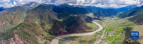 6月22日在國(guó)道317線昌都段類烏齊縣附近拍攝的河谷景觀(無人機(jī)照片)。