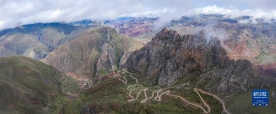 6月17日在國(guó)道317線昌都段丁青縣附近拍攝的鄉(xiāng)村公路景觀(無人機(jī)照片)。