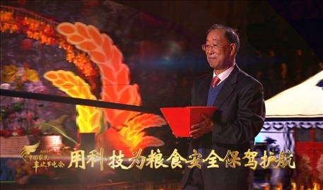 民以食為天,食以糧為先。2023年豐晚現(xiàn)場(chǎng),沿著五條金穗鋪展的“豐收大道”,五位育種專家將手捧五斗種子,把自主創(chuàng)新培育的棉花、小麥、玉米、花生、水稻種子,鄭重交給自己的學(xué)生,并和一批農(nóng)科大學(xué)新生代表共同完成一場(chǎng)別有深意的“中國(guó)種子傳承儀式”。種子最終被播入“五色土”,不僅種下代代傳承、年年豐收的美好心愿,更承載著一代又一代科研工作者不斷求索與接力、守護(hù)糧食安全的責(zé)任和使命。