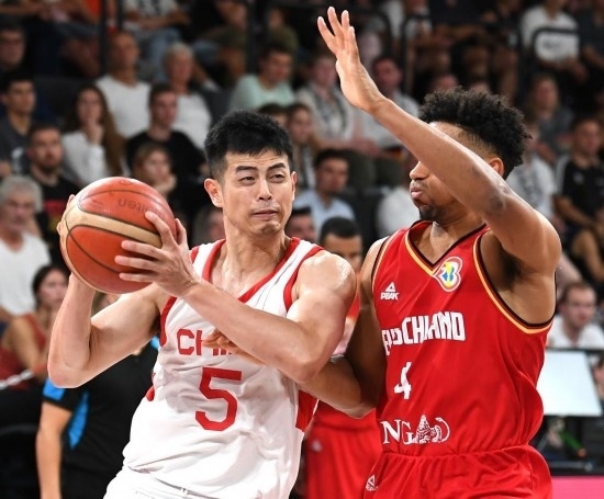 8月12日,在德國漢堡舉行的德國籃球超級杯比賽,中國隊以58:107不敵德國隊。新華社記者任鵬飛攝