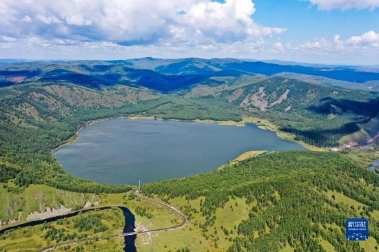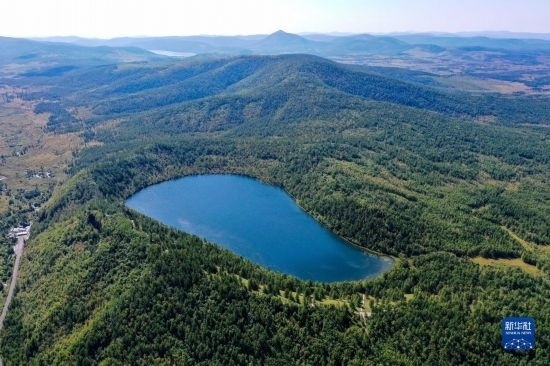 這是8月31日拍攝的阿爾山國家森林公園阿爾山天池景色(無人機(jī)照片)。