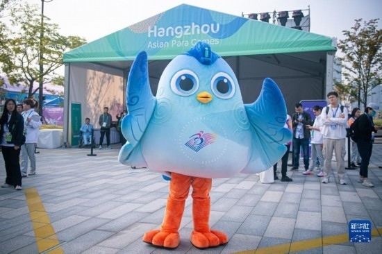 10月16日,杭州亞殘運會吉祥物“飛飛”在開村儀式上。新華社記者 江漢 攝