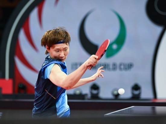 12月6日,中國(guó)隊(duì)選手王曼昱在女單比賽中回球。新華社記者 王曦 攝