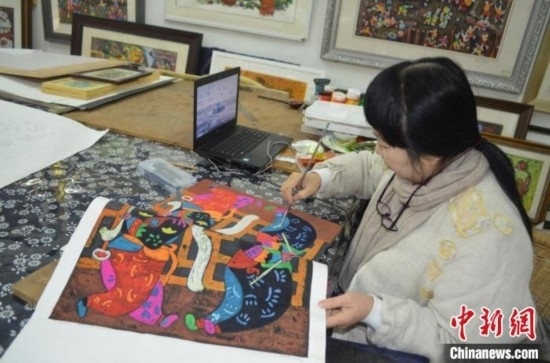 “小時(shí)候跟著奶奶學(xué)習(xí)納鞋底、刺繡,漸漸地喜歡上了繪制各種圖案,我的刺繡在村里也小有名氣。17歲那年,四川美術(shù)學(xué)院的老師到村里招收版畫學(xué)徒,我就報(bào)名了。當(dāng)時(shí)條件很艱苦,很多人不理解,被家里人說不務(wù)正業(yè)。但我就是喜歡這些色彩、線條,一直堅(jiān)持到現(xiàn)在?!苯徽勚校畛芍フ勂鹚陌娈嬌?。