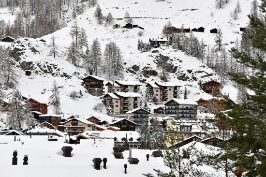 這是2023年12月10日在瑞士采爾馬特拍攝的山中小屋。新華社記者 連漪 攝