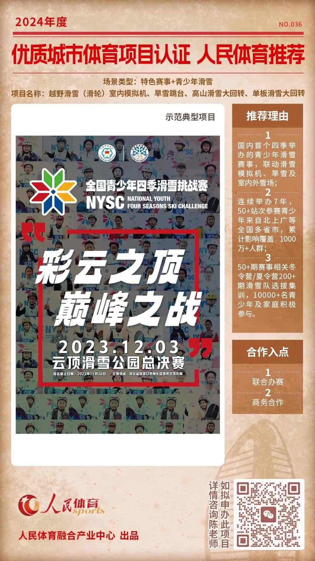 人民體育發(fā)起的“優(yōu)質(zhì)體育賽事及活動(dòng)認(rèn)證推薦計(jì)劃”,于2024年01月推出第四批共9個(gè)推薦項(xiàng)目,本期推薦首次推出單個(gè)項(xiàng)目深度介紹欄目。同時(shí),第五期推薦項(xiàng)目征集開啟中。