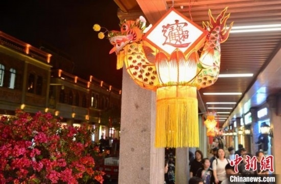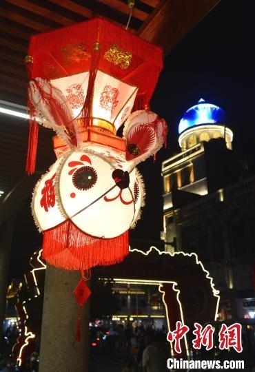 圖為2月20日晚,泉州中山路騎樓兩側,花燈流光溢彩,美不勝收。 中新網(wǎng)記者 張斌 攝