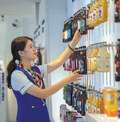 杭州市千島湖啤酒博物館內,館員正在整理藏品。千島湖啤酒博物館供圖