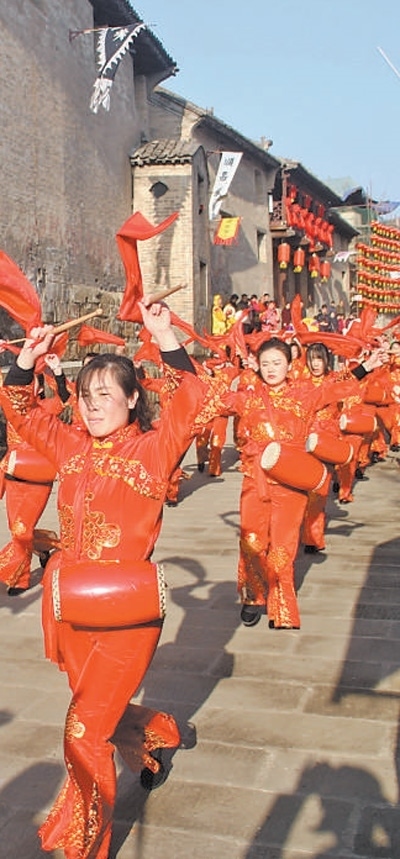 上莊村村民在表演山西省非物質(zhì)文化遺產(chǎn)“中莊秧歌”。張家慶攝(人民視覺(jué))