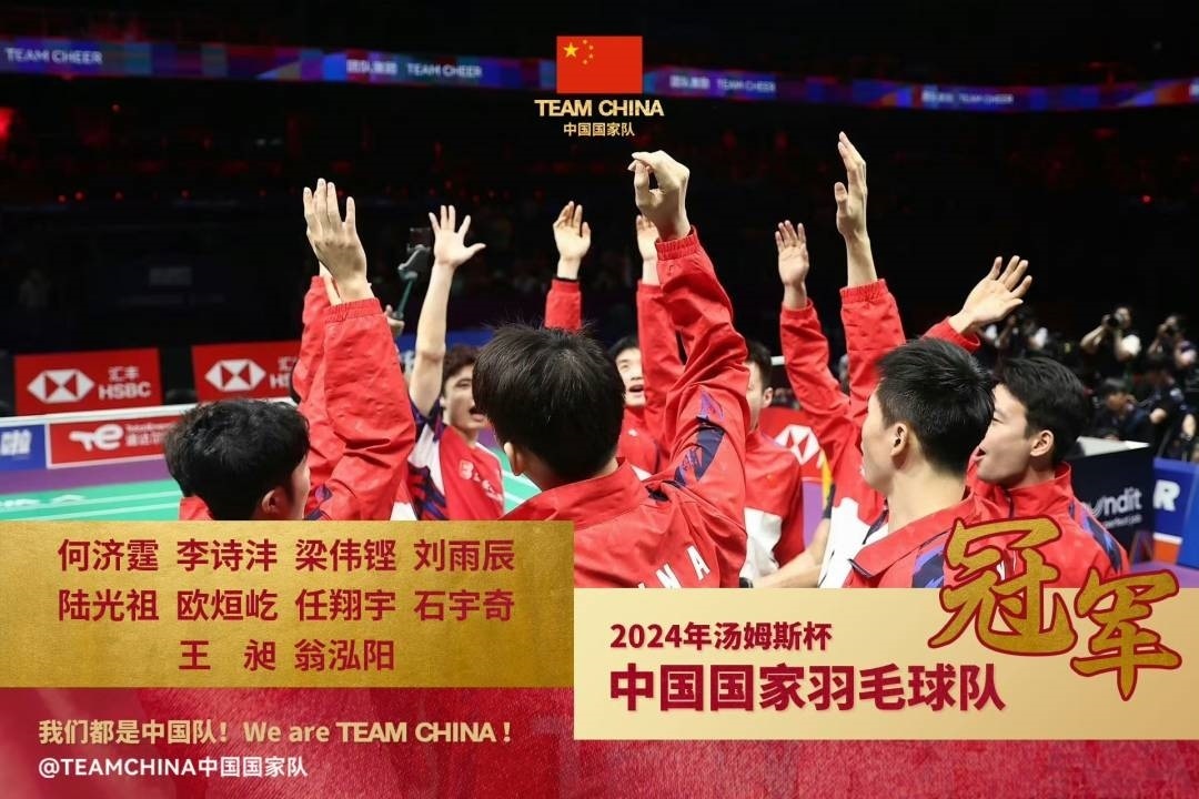 這是中國羽毛球隊參賽歷史上第11次捧起世界羽毛球男子團體錦標賽最高榮譽湯姆斯杯,也是繼2012年后,再次同時包攬湯姆斯杯和尤伯杯雙冠。
