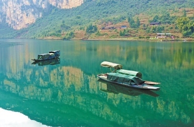重慶酉陽龔灘鎮(zhèn)江面扁舟。段成軍攝(影像中國)