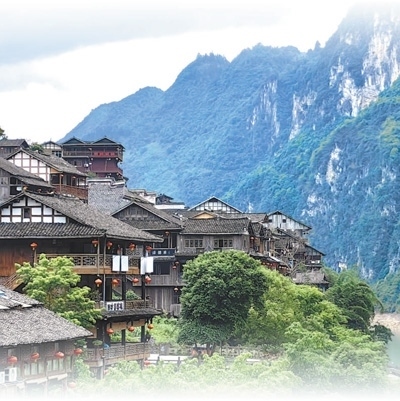 龔灘鎮(zhèn)小銀村,吊腳樓群依山就勢。本報(bào)記者姜峰攝