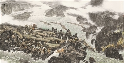 中國畫《李冰父子與都江堰》,作者梁時民、李錛、張躍進(jìn)。