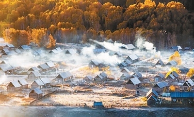 晨光透過薄霧,灑向布爾津縣禾木村這座古老的村落。裊裊炊煙從尖頂小木屋上升起,蒼鷹在空中盤旋,遠處的白樺林連綿不絕,溫柔環(huán)抱著禾木村。