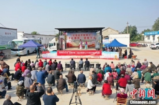 10月8日,重陽節(jié)到來前夕,河北衡水深州市高古莊鎮(zhèn)北梨園村舉行“九九重陽節(jié) 濃濃敬老情”主題活動(dòng),來自該村的102名70歲以上老人齊聚一堂,同吃“愛心宴”,喜迎重陽節(jié)?;顒?dòng)中,當(dāng)?shù)貫槔先藗儨?zhǔn)備了戲曲、鑼鼓等文藝節(jié)目,贈(zèng)送喜慶的紅圍脖、紅手套,現(xiàn)場(chǎng)對(duì)老人們義診,送上濃濃節(jié)日問候和美好祝福。圖為河北衡水深州市高古莊鎮(zhèn)北梨園村,老人們齊聚一堂,同吃“愛心宴”。 袁佳凱 攝
