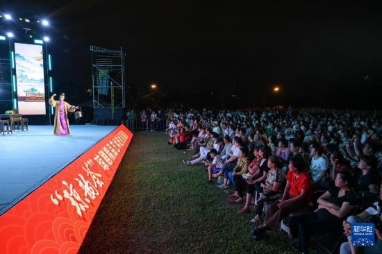 10月6日,“瓊韻薈”瓊劇精品藝術(shù)進社區(qū)展演在海南省??谑腥f綠園舉行。來自海南省瓊劇院一團的演員們?yōu)橛^眾獻上了古裝瓊劇《巡按審妻》。觀眾在觀看瓊劇過程中,感受非遺文化的魅力。