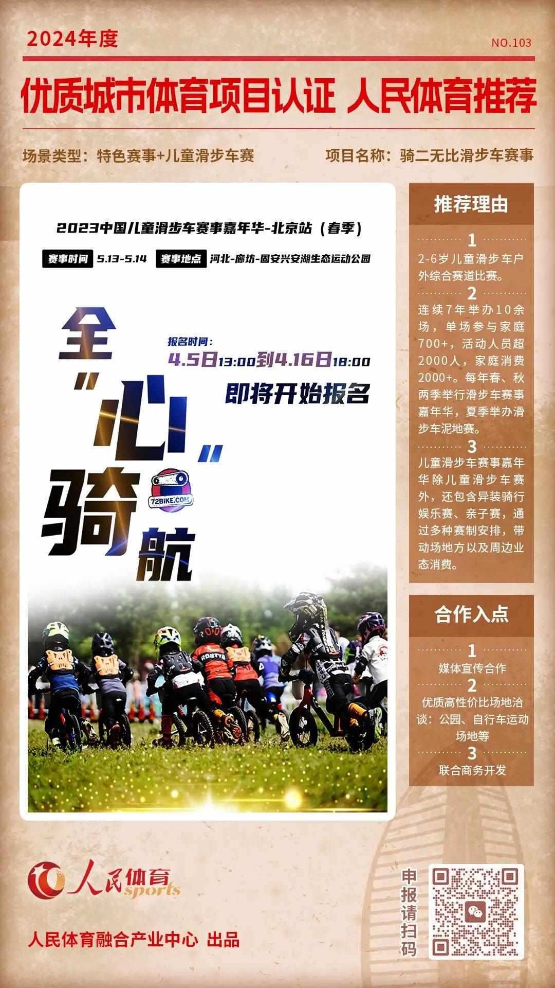 “優(yōu)質(zhì)體育賽事及活動(dòng)認(rèn)證推薦計(jì)劃”是人民體育“城市體育產(chǎn)業(yè)高質(zhì)量發(fā)展計(jì)劃”的重要組成部分,人民體育一直致力于攜手權(quán)威機(jī)構(gòu)、組織單位等聯(lián)合推薦優(yōu)質(zhì)項(xiàng)目,項(xiàng)目類型包括且不限于賽事、活動(dòng),也涵蓋產(chǎn)品與服務(wù)類別。旨在以更客觀的角度,展示在體育產(chǎn)業(yè)發(fā)展中有所創(chuàng)新,有所價(jià)值的項(xiàng)目,促進(jìn)多方相互了解,融合發(fā)展。