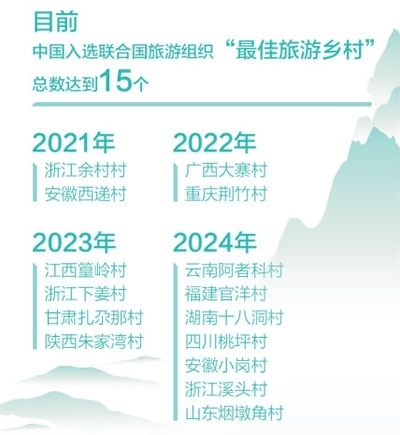 北京時間11月15日,在哥倫比亞卡塔赫納舉行的聯(lián)合國旅游組織執(zhí)行委員會第122次會議上,公布了2024年“最佳旅游鄉(xiāng)村”名單。我國申報的云南阿者科村、福建官洋村、湖南十八洞村、四川桃坪村、安徽小崗村、浙江溪頭村、山東煙墩角村7個鄉(xiāng)村入選,是本屆入選鄉(xiāng)村數(shù)量最多的國家。至此,我國的“最佳旅游鄉(xiāng)村”總數(shù)達(dá)到15個,居世界第一。