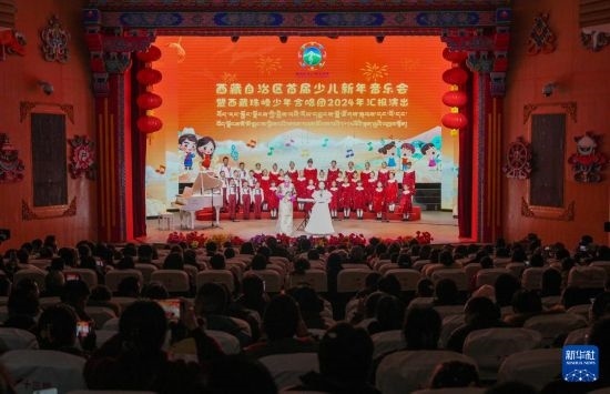 12月28日拍攝的西藏首屆少兒新年音樂會暨西藏珠峰少年合唱團(tuán)2024年匯報演出現(xiàn)場。