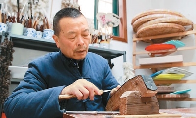 隨著制筆工藝的創(chuàng)新發(fā)展,宣筆品類如今多達(dá)幾百種。如何在守正的同時更好創(chuàng)新?這是佘征軍一直在思考的問題。在生產(chǎn)流程方面,佘征軍及其團(tuán)隊改良了筆桿材質(zhì),讓不同風(fēng)格的筆桿和筆頭都可適配,也讓產(chǎn)品設(shè)計、生產(chǎn)更標(biāo)準(zhǔn)化,有利于市場推廣。在設(shè)計風(fēng)格方面,佘征軍根據(jù)市場需求,為消費者提供更多產(chǎn)品選擇——以老式桿秤為造型的“稱心如意筆”、兼具實用與審美功能的簪筆、集筆頭與筆桿于一體的竹筆……一支支別具新意、造型新穎的宣筆新品,備受市場青睞。佘征軍笑著說:“讓毛筆走出書房,進(jìn)入現(xiàn)代生活,也算是樂事一件?!?/p>